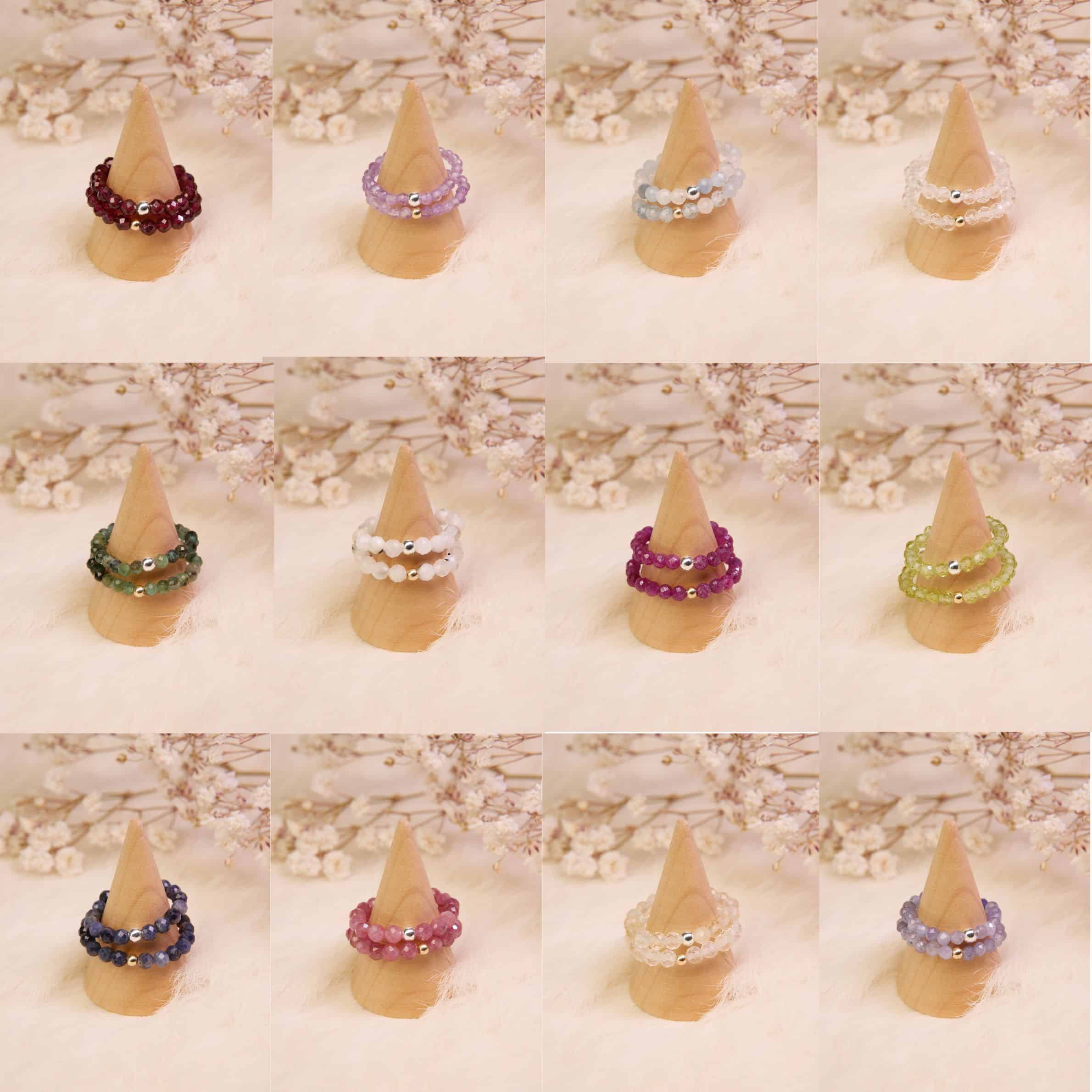 In mijn atelier maakte ik deze geboortsteenringetje met een 925 zilver of goud RVS kraaltjes in het midden. Kies het degene die past bij jouw verjaardag of ga voor degene met jouw lievelingsedelsteen.