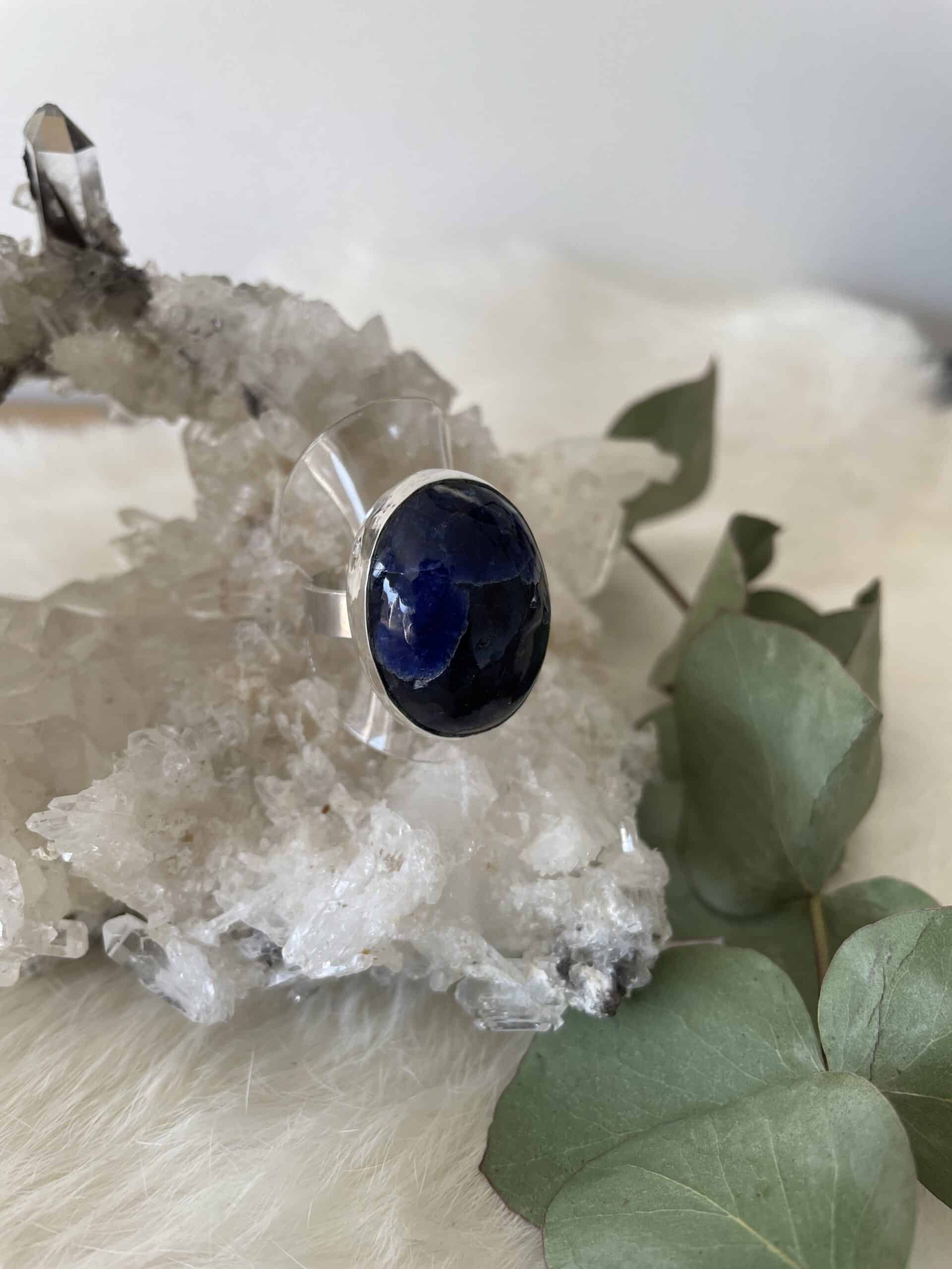 Ring met een handgeslepen Sodaliet, maat 19 (diameter van de ring).